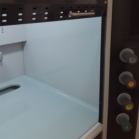 - Hava musluğu, su musluğu, vakum musluğu olmak üzere ilave muslukları bulunmaktadır.